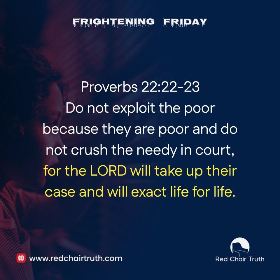 Do not exploit the poor because they are poor and do not crush the needy in court, for the LORD will take up their case and will exact life for life.