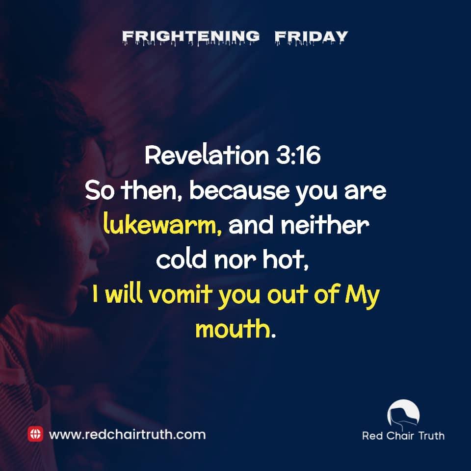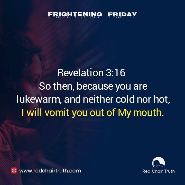 So then, because you are lukewarm, and neither cold nor hot, I will vomit you out of My mouth.