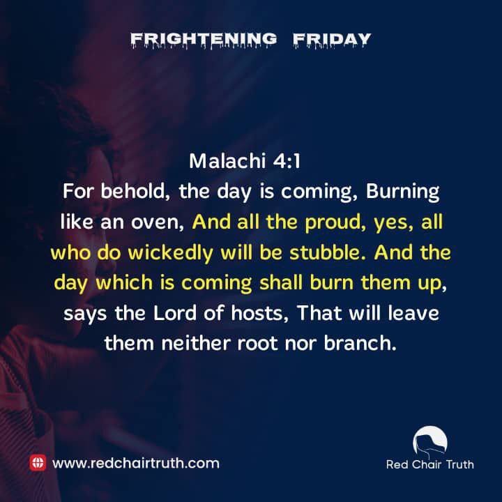 For behold, the day is coming, Burning like an oven, And all the proud, yes, all who do wickedly will be stubble. And the day which is coming shall burn them up, says the Lord of hosts, That will leave them neither root nor branch.