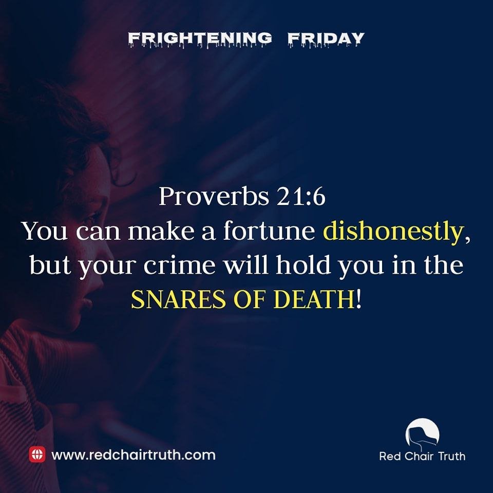 You can make a fortune dishonestly, but your crime will hold you in the SNARES OF DEATH!