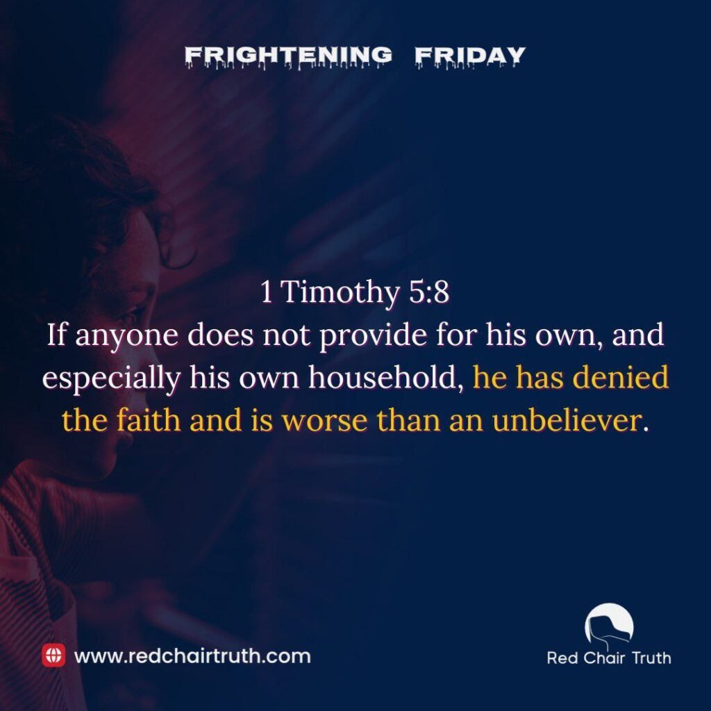 If anyone does not provide for his own, and especially his own household, he has denied the faith and is worse than an unbeliever.