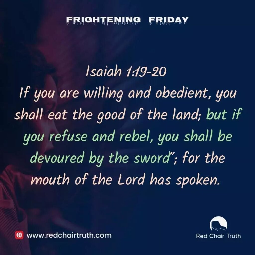 If you are willing and obedient, you shall eat the good of the land; but if you refuse and rebel, you shall be devoured by the sword”; for the mouth of the Lord has spoken.