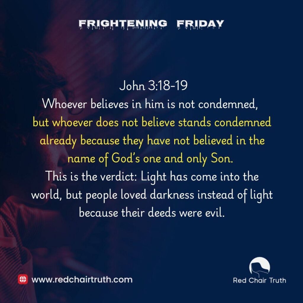 Whoever believes in him is not condemned, but whoever does not believe stands condemned already because they have not believed in the name of God’s one and only Son. This is the verdict: Light has come into the world, but people loved darkness instead of light because their deeds were evil.