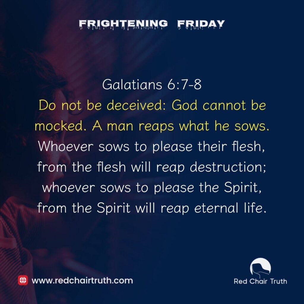 Do not be deceived: God cannot be mocked. A man reaps what he sows. Whoever sows to please their flesh, from the flesh will reap destruction; whoever sows to please the Spirit, from the Spirit will reap eternal life.