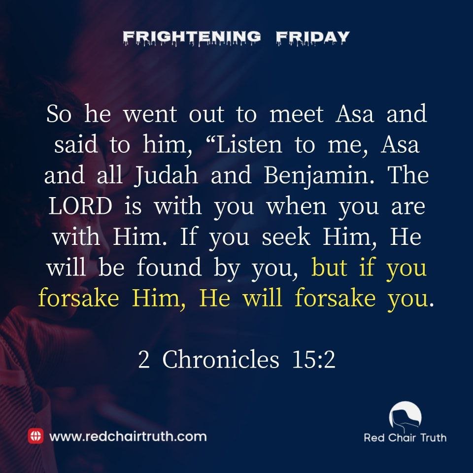 So he went out to meet Asa and said to him, “Listen to me, Asa and all Judah and Benjamin. The LORD is with you when you are with Him. If you seek Him, He will be found by you, but if you forsake Him, He will forsake you.