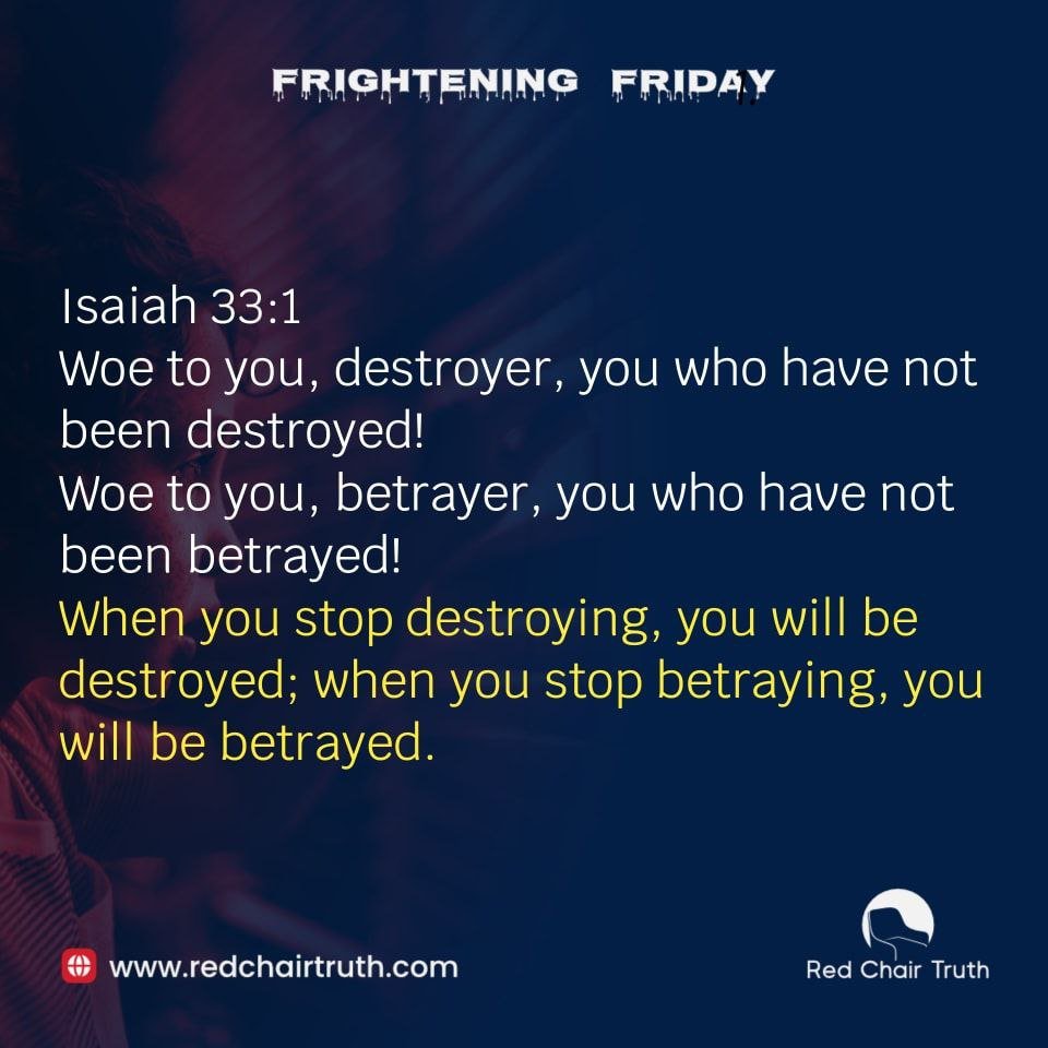 Woe to you, destroyer, you who have not been destroyed! Woe to you, betrayer, you who have not been betrayed! When you stop destroying, you will be destroyed; when you stop betraying, you will be betrayed.