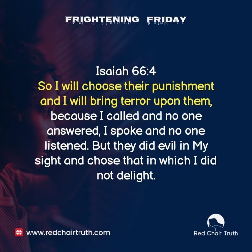 So I will choose their punishment and I will bring terror upon them, because I called and no one answered, I spoke and no one listened. But they did evil in My sight and chose that in which I did not delight.
