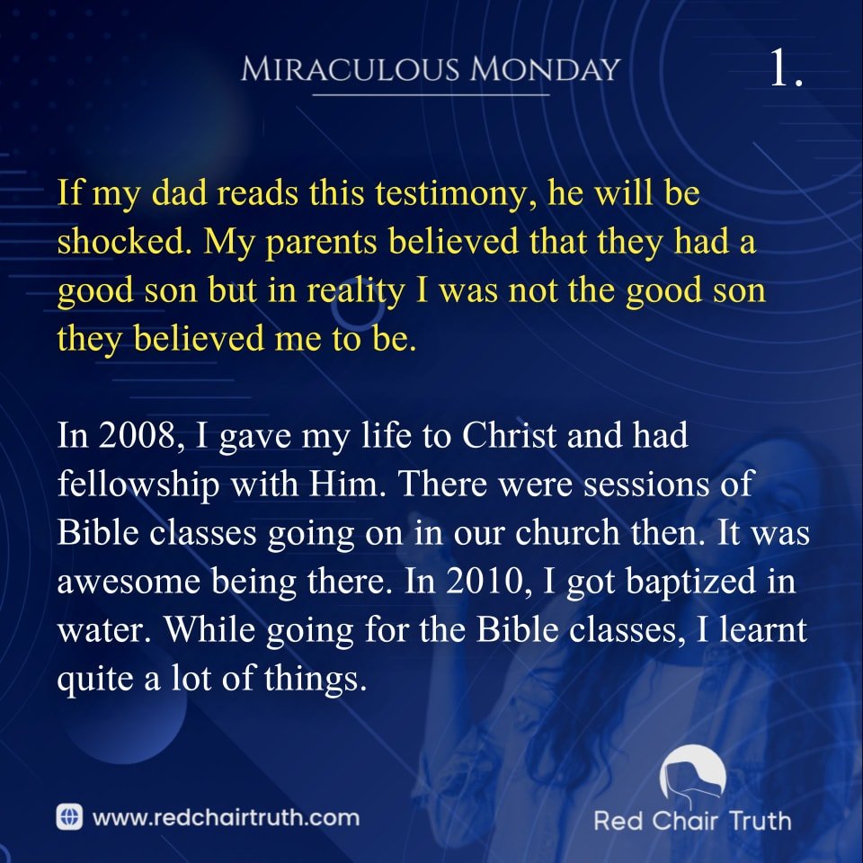 If my dad reads this testimony, he will be shocked. My parents believed that they had a good son but in reality I was not the good son they believed me to be.