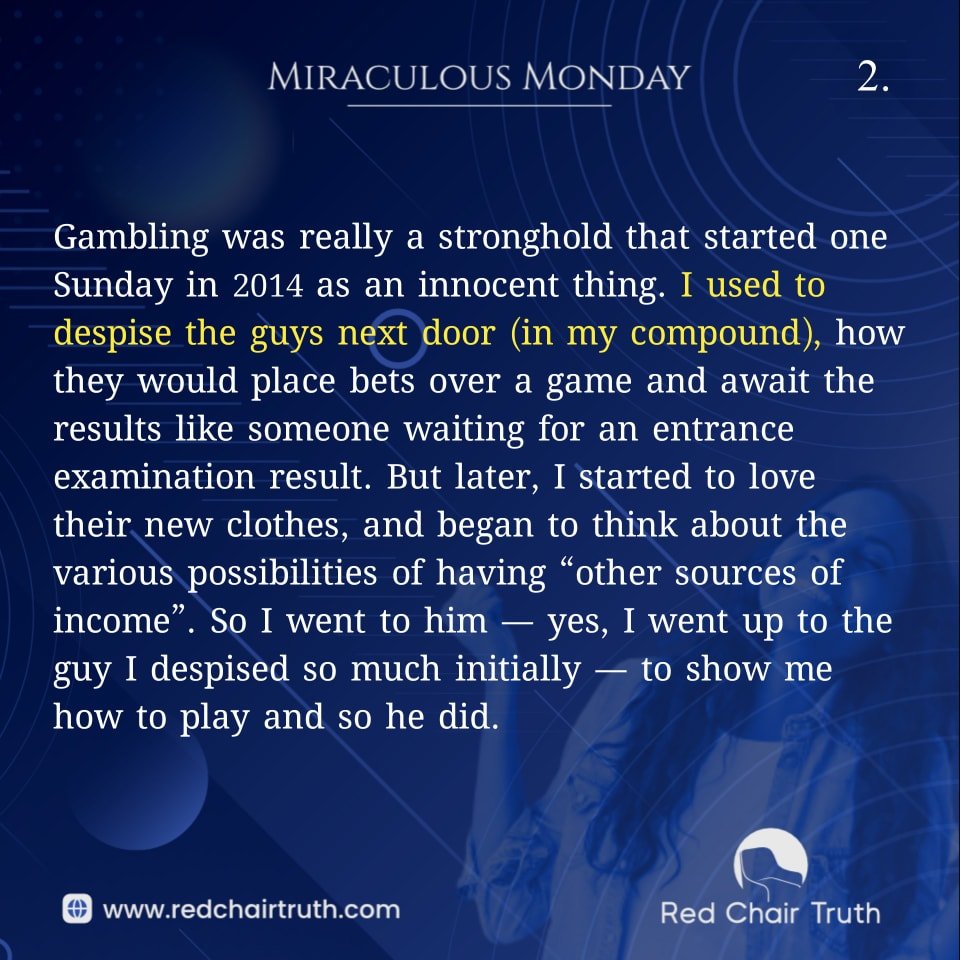 Gambling was a stronghold that began one Sunday in 2014 — and it started innocently. I used to despise the guys next door in my compound who would place bets over a game and await the results like someone waiting for an exam result.