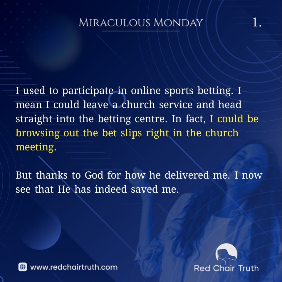 I used to participate in online sports betting. I mean, I could leave a church service and head straight into the betting centre. In fact, I could be browsing bet slips right in the middle of a church meeting.