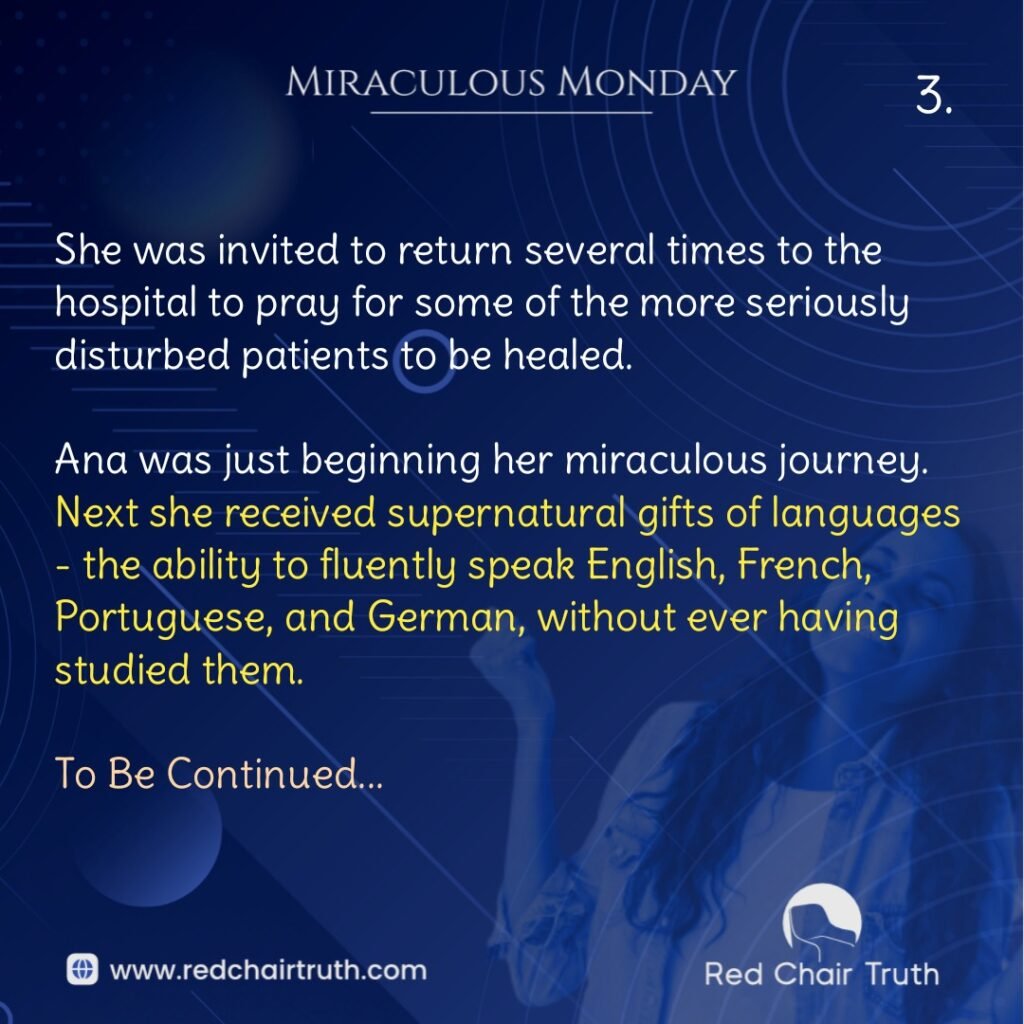 Ana was just beginning her miraculous journey. Next she received supernatural gifts of languages—the ability to fluently speak English, French, Portuguese, and German, without ever having studied them.