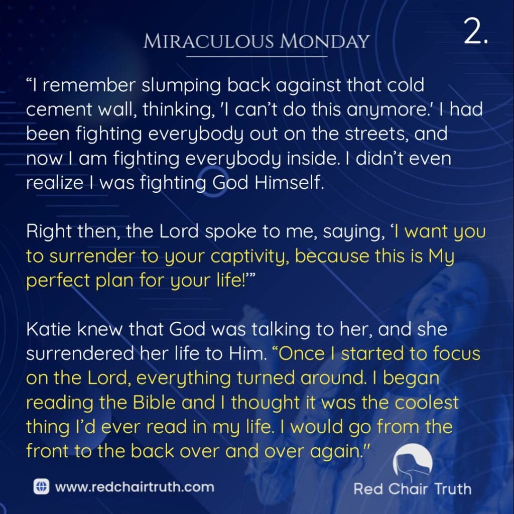 Right then, the Lord spoke to me, saying, ‘I want you to surrender to your captivity, because this is My perfect plan for your life!’