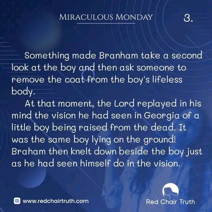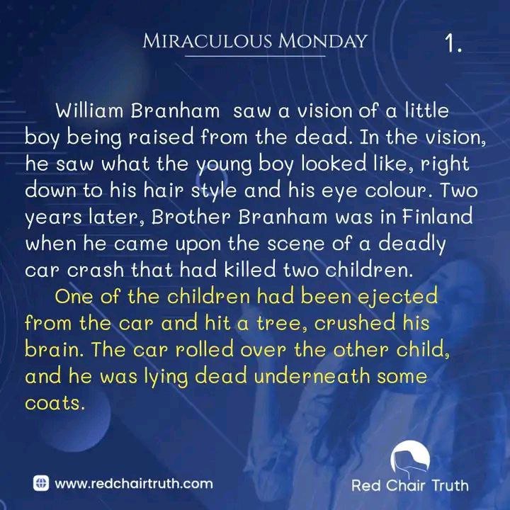 William Branham saw a vision of a little boy being raised from the dead. In the vision, he saw what the young boy looked like, right down to his hair style and his eye colour.