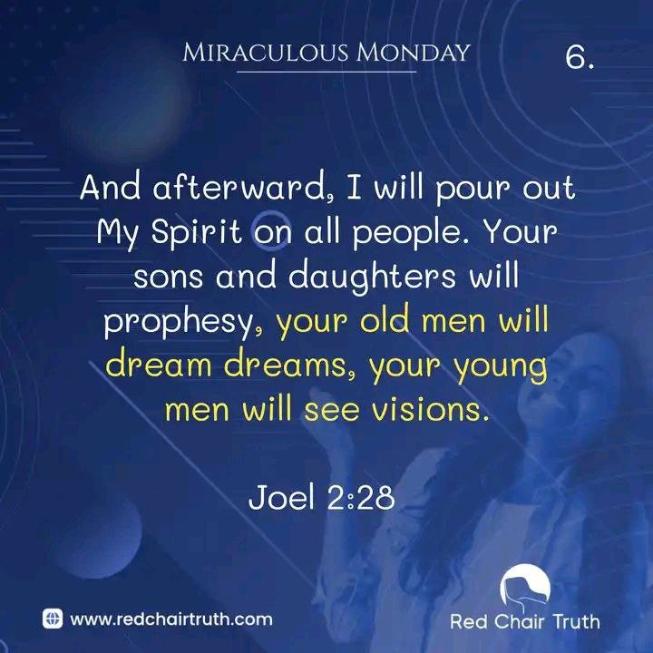 your old men will dream dreams, your young men will see visions.” Joel 2:28