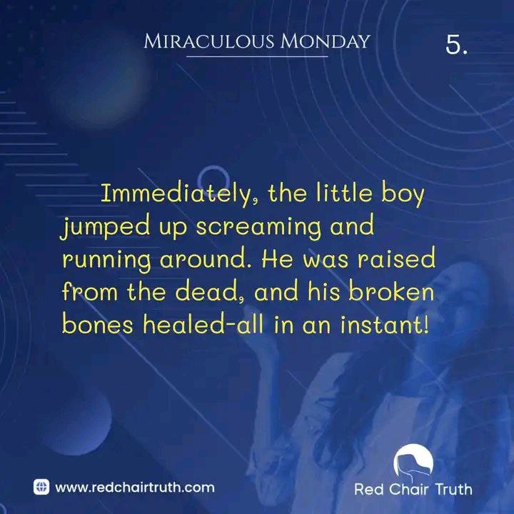 Immediately, the little boy jumped up screaming and running around. He was raised from the dead, and his broken bones healed—all in an instant!