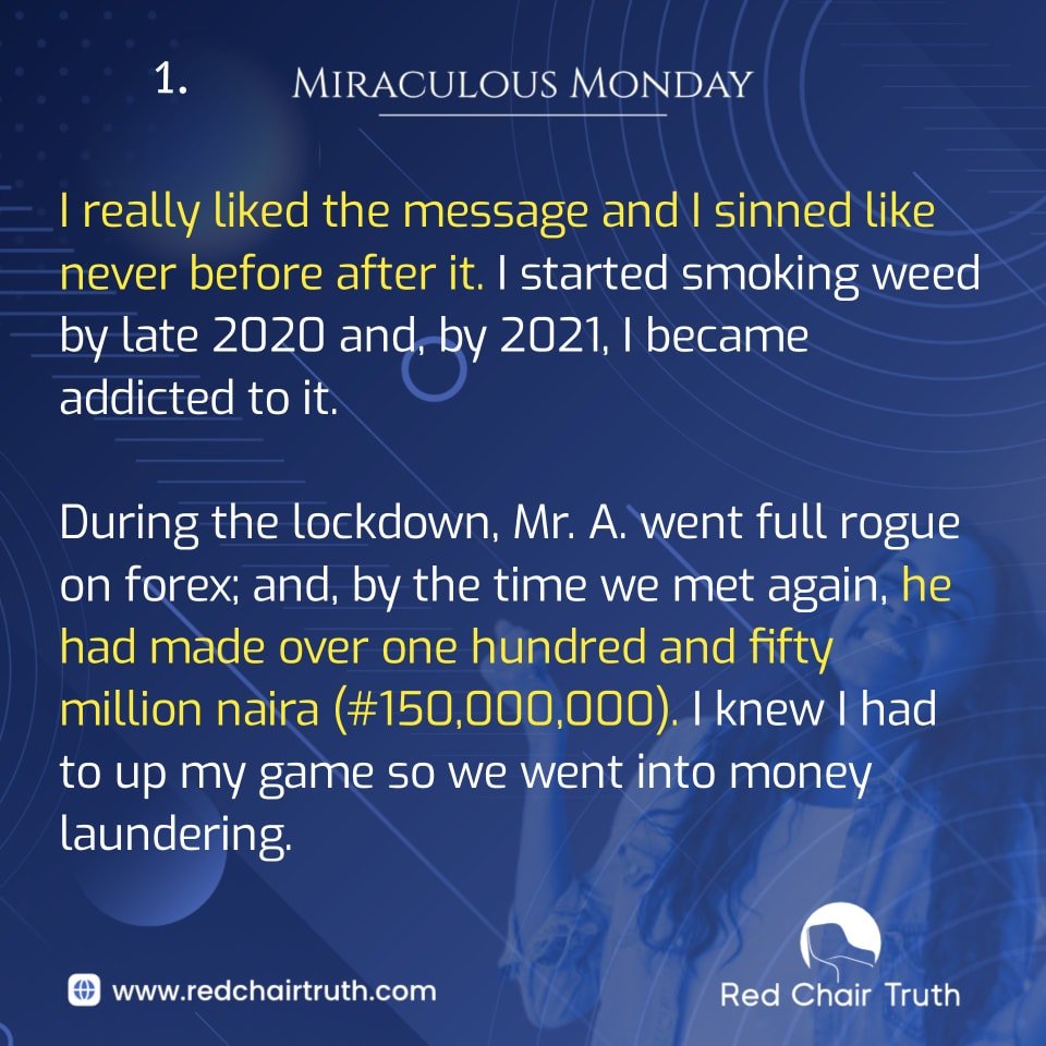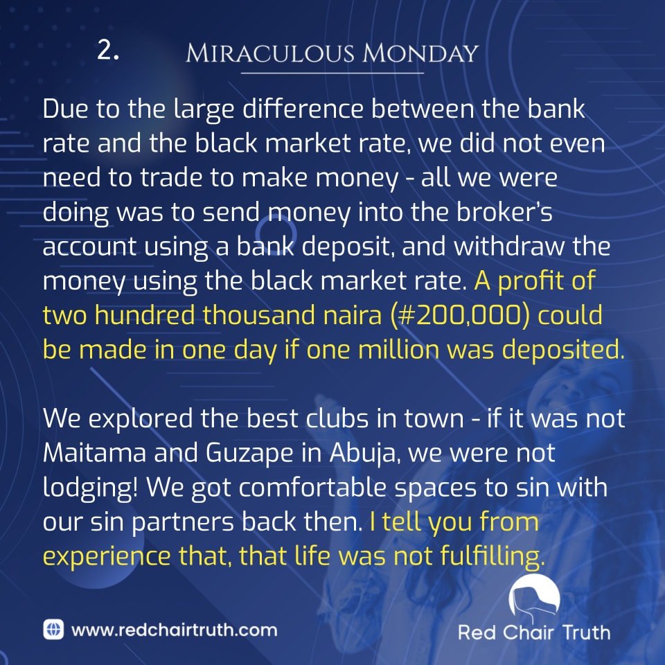 During the lockdown, Mr. A. went full rogue on forex; and, by the time we met again, he had made over one hundred and fifty million naira (#150,000,000). I knew I had to up my game so we went into money Laundering.