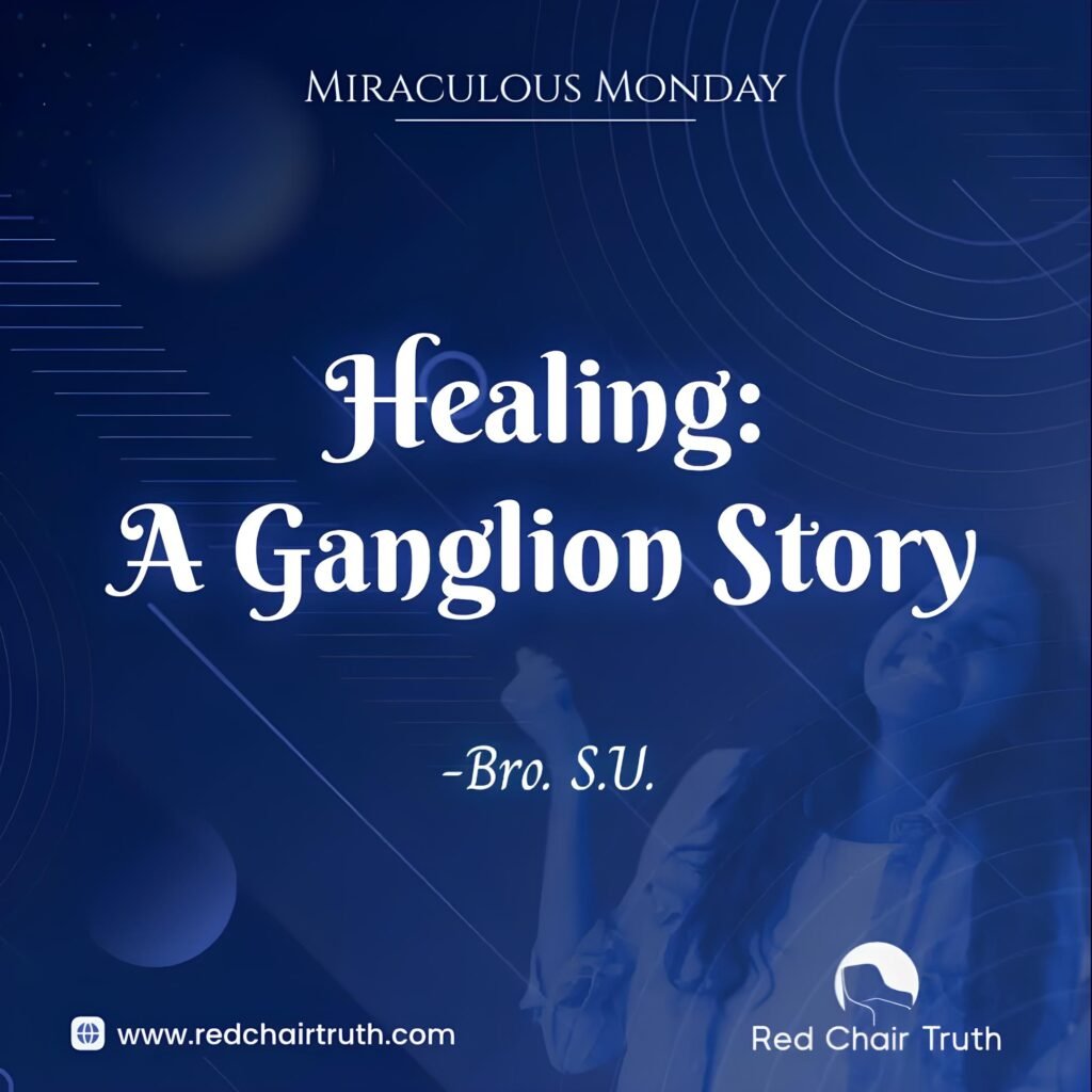 On this fateful day, while we were worshipping in church, I heard Pastor say, “Lift up your hands and worship.” I lifted up my hands and got so carried away with being in the Lord’s presence that I did not even remember to cover my left wrist. Sometime into the worship, I remembered the ganglion and thought to cover it.