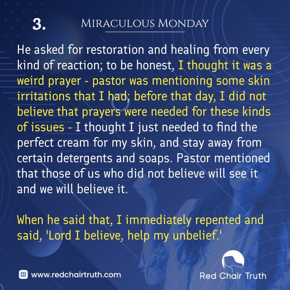 Pastor mentioned that those of us who did not believe will see it and we will believe it. When he said that, I immediately repented and said, “Lord, I believe; help my unbelief.”
