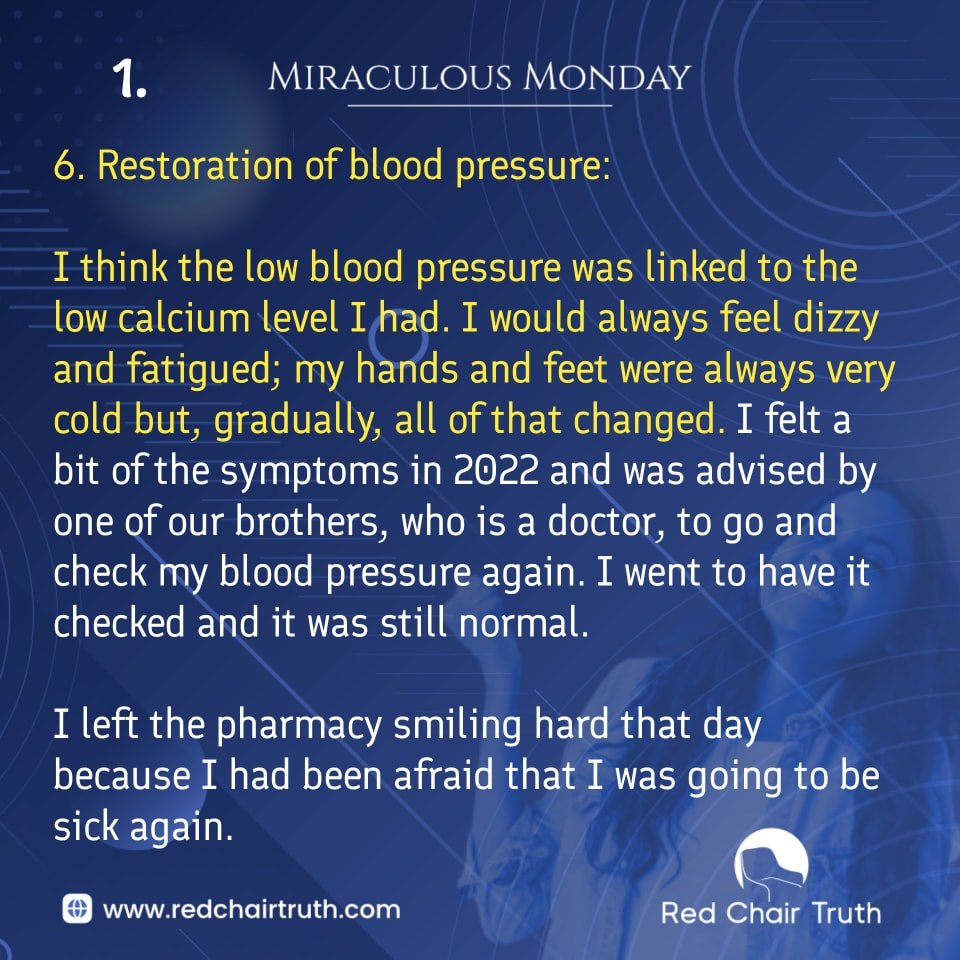 I think the low blood pressure was linked to the low calcium level I had. I would always feel dizzy and fatigued; my hands and feet were always very cold but, gradually, all of that changed. I felt a bit of the symptoms in 2022 and was advised by one of our brothers, who is a doctor, to go and check my blood pressure again. I went to have it checked and it was still normal.