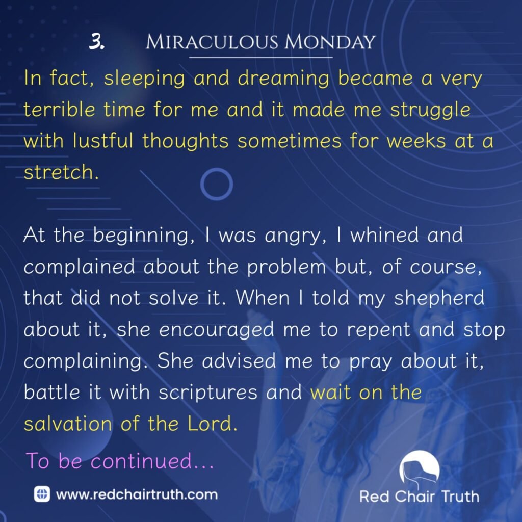 In fact, sleeping and dreaming became a very terrible time for me and it made me struggle with lustful thoughts sometimes for weeks at a stretch.
