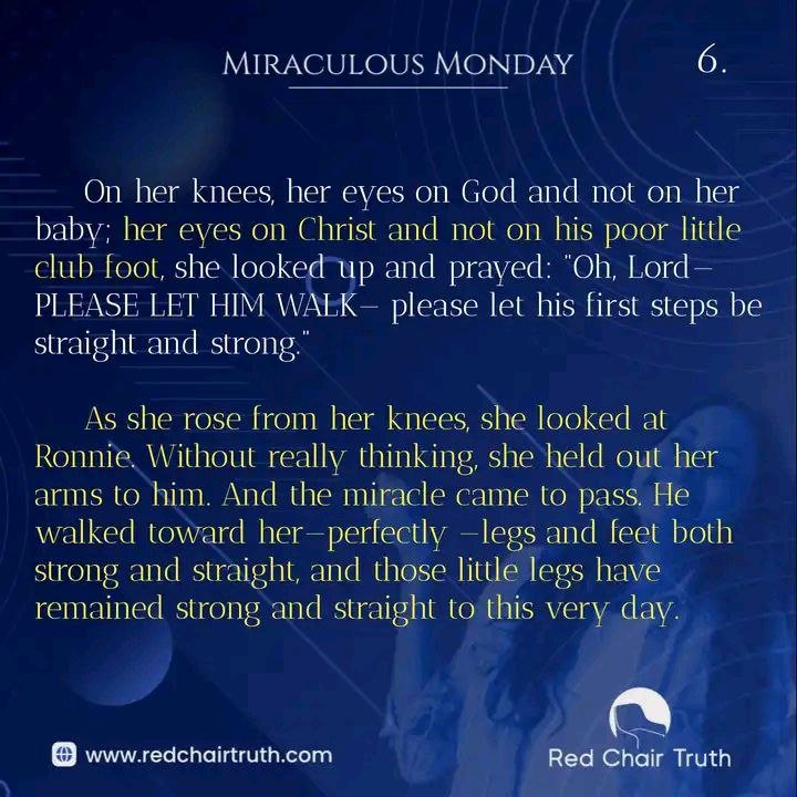 On her knees, her eyes on God and not on her baby; her eyes on Christ and not on his poor little club foot, she looked up and prayed: “Oh, Lord—PLEASE LET HIM WALK—please let his first steps be straight and strong.”