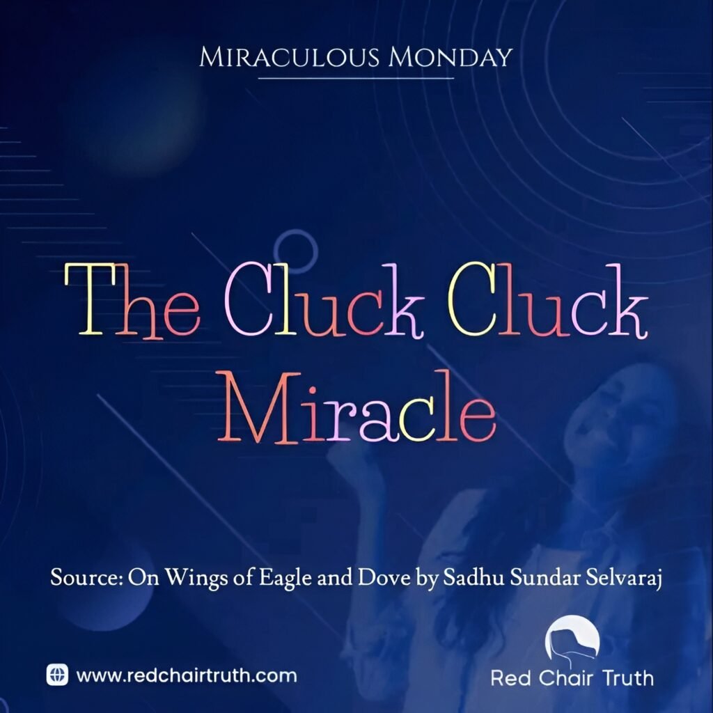 A little while later, a hen appeared at her doorstep. The Lord then told her to pick up the hen and put it on the first step of the stairs. She, in simple childlike faith, told the Lord that she would obey Him if He would stop the hen from clucking.