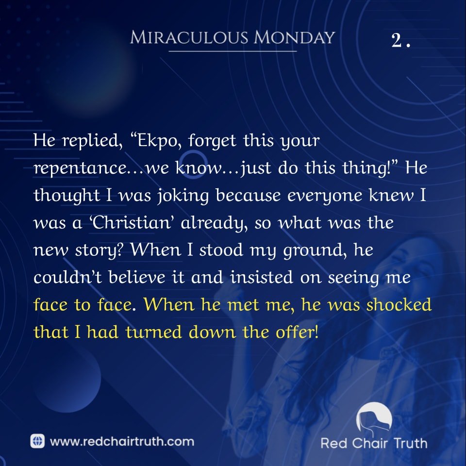 He thought I was joking because everyone already knew I was a ‘Christian,’ so he couldn’t take my new conviction seriously. When I stood my ground, he insisted on seeing me face-to-face. When we finally met, he was shocked that I had truly turned down the offer.