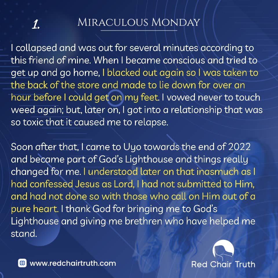 Soon after that, I came to Uyo towards the end of 2022 and became part of God’s Lighthouse and things really changed for me. I understood later on that inasmuch as I had confessed Jesus as Lord, I had not submitted to Him, and had not done so with those who call on Him out of a pure heart. I thank God for bringing me to God’s Lighthouse and giving me brethren who have helped me stand.