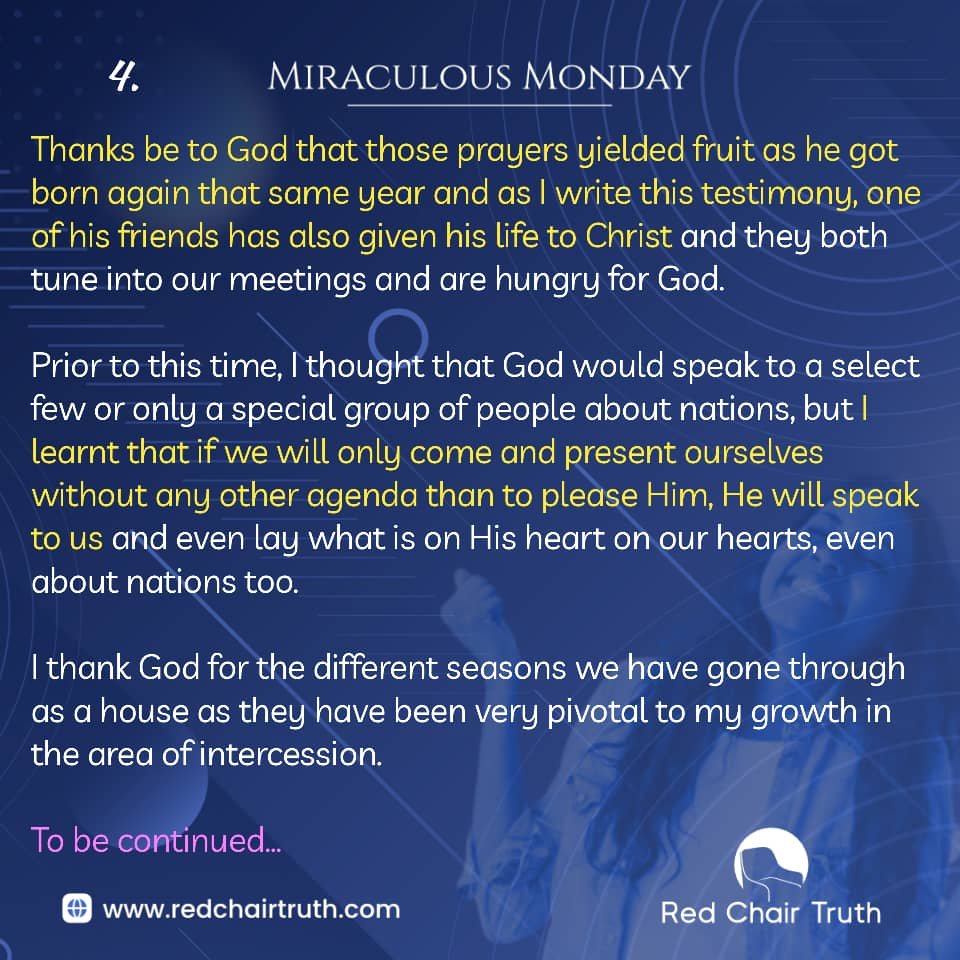 Thanks be to God that those prayers yielded fruit as he got born again that same year and as I write this testimony, one of his friends has also given his life to Christ and they both tune into our meetings and are hungry for God.