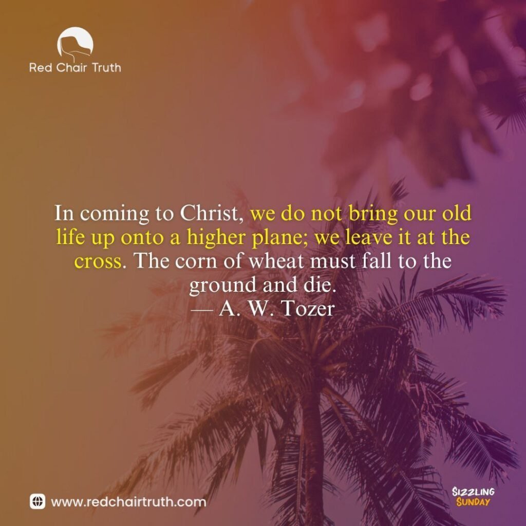 In coming to Christ, we do not bring our old life up onto a higher plane; we leave it at the cross. The corn of wheat must fall to the ground and die.