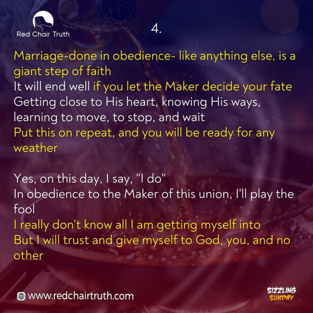 Marriage-done in obedience- like anything else, is a giant step of faith