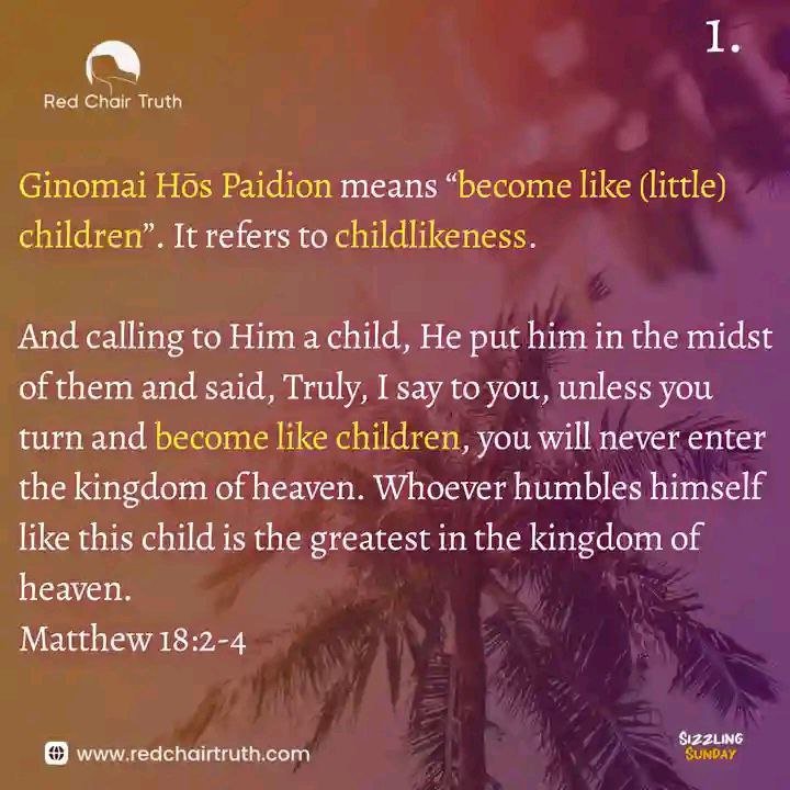Ginomai Hōs Paidion means “become like (little) children”. It refers to childlikeness.