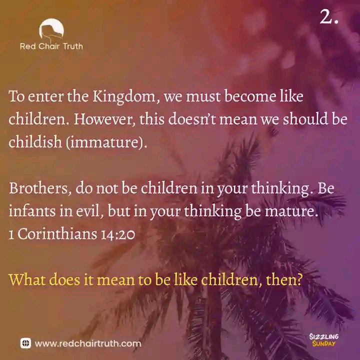 To enter the Kingdom, we must become like children. However, this doesn’t mean we should be childish (immature).
