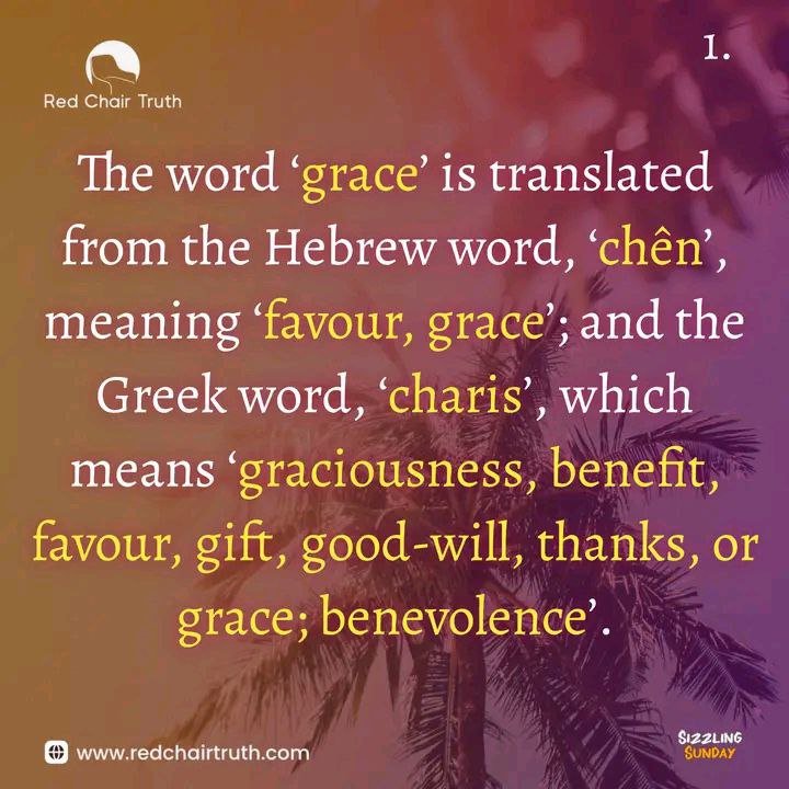 The word ‘grace’ is translated from the Hebrew word, ‘chen’, meaning ‘favour, grace’; and the Greek word, ‘charis’, which means ‘graciousness, benefit, favour, gift, good-will, thanks, or grace; benevolence’.