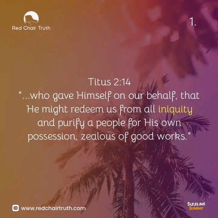 "...who gave Himself on our behalf, that He might redeem us from all iniquity and purify a people for His own possession, zealous of good works.” Titus 2:14