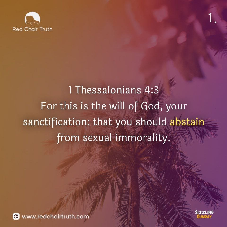 "For this is the will of God, your sanctification: that you should abstain from sexual immorality." 1 Thessalonians 4:3