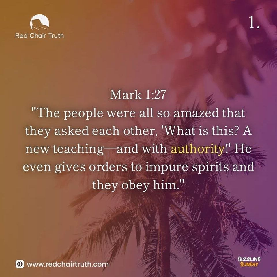 "The people were all so amazed that they asked each other, 'What is this? A new teaching—and with authority!' He even gives orders to impure spirits and they obey him.” Mark 1:27