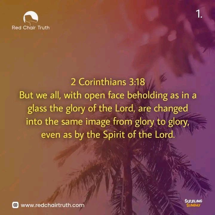 "But we all, with open face beholding as in a glass the glory of the Lord, are changed into the same image from glory to glory, even as by the Spirit of the Lord." 2 Corinthians 3:18