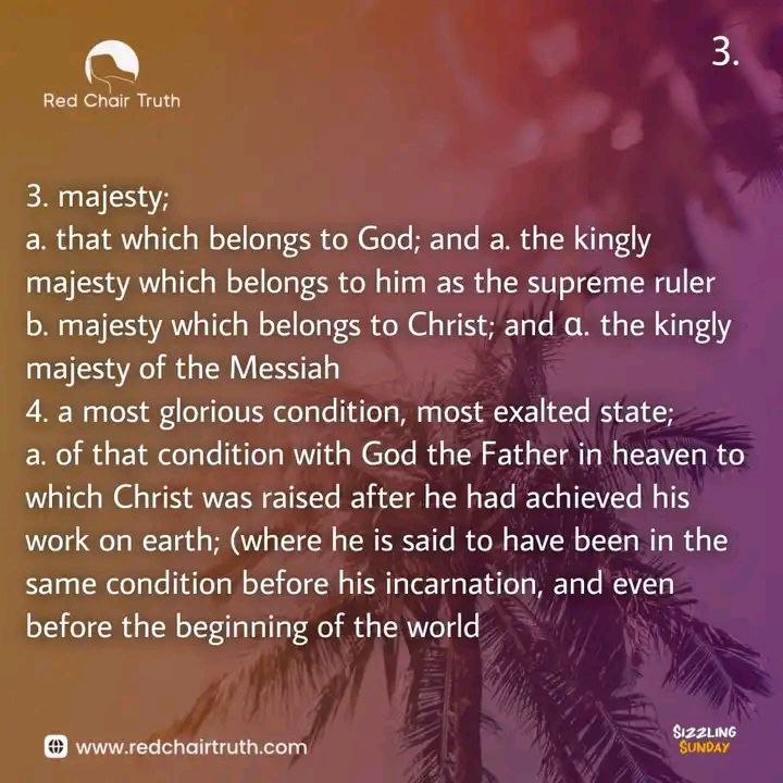 b. majesty which belongs to Christ; and a. the kingly majesty of the Messiah - a most glorious condition, most exalted state;