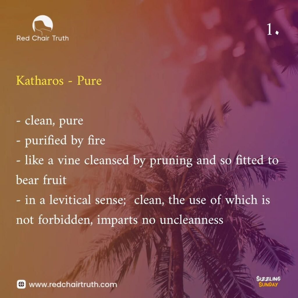 -in a levitical sense; clean, the use of which is not forbidden, imparts no uncleanness - ethically: free from corrupt desire, from sin and guilt, free from every admixture of what is false, sincere genuine