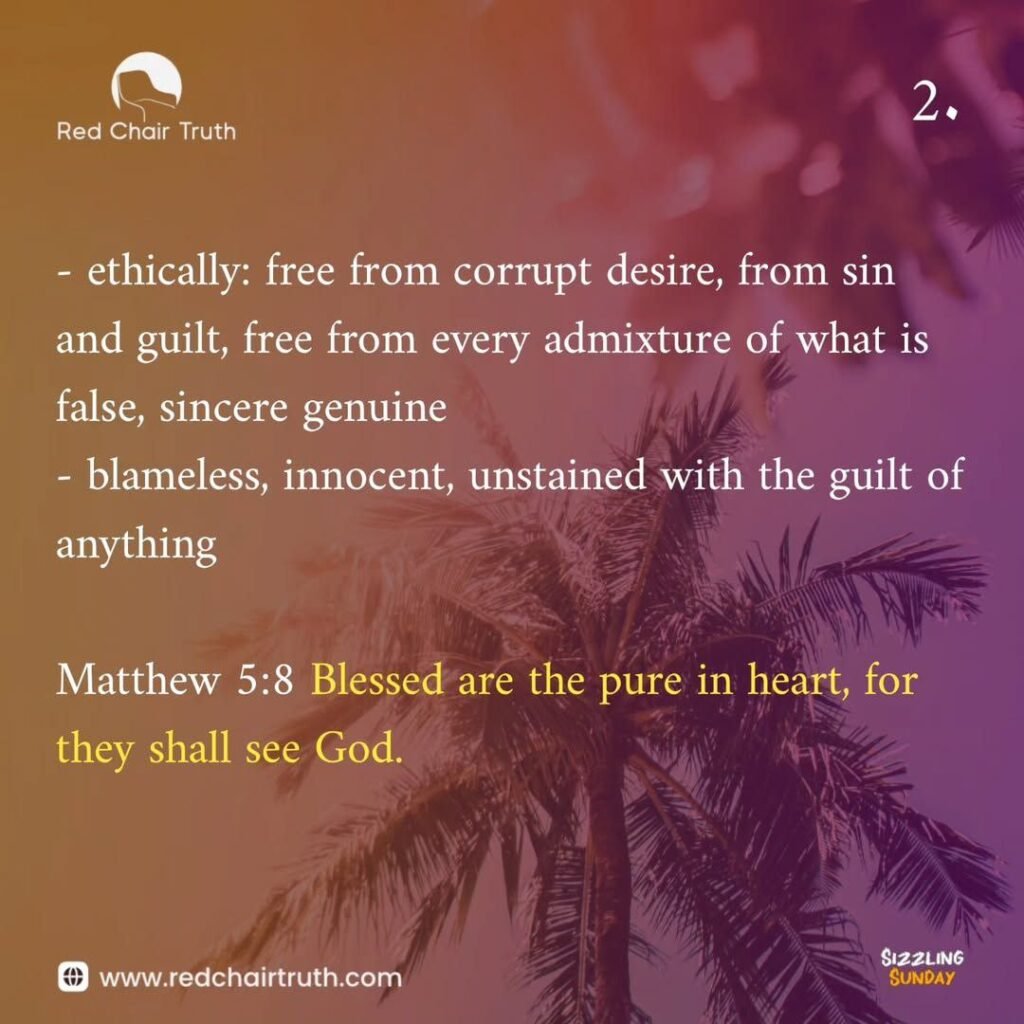 "Blessed are the pure in heart, for they shall see God." Matthew 5:8