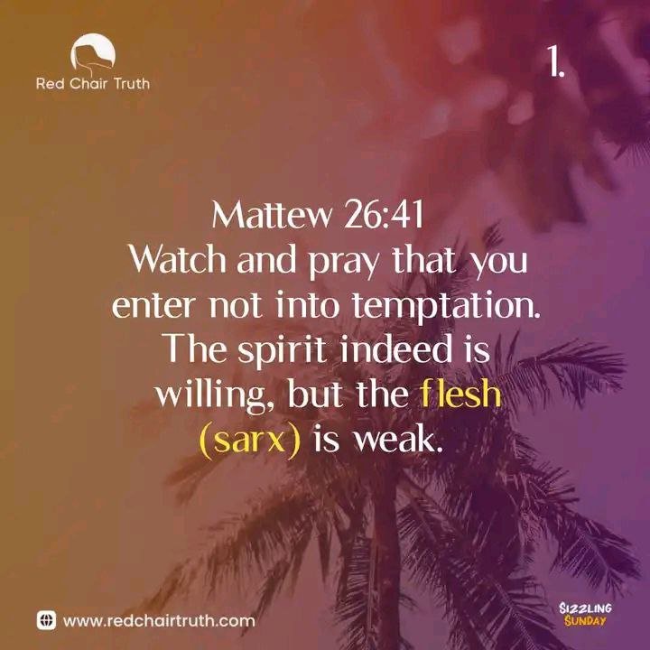 "Watch and pray that you enter not into temptation. The spirit indeed is willing, but the flesh (sarx) is weak." Matthew 26:41