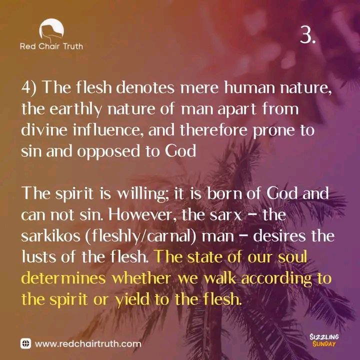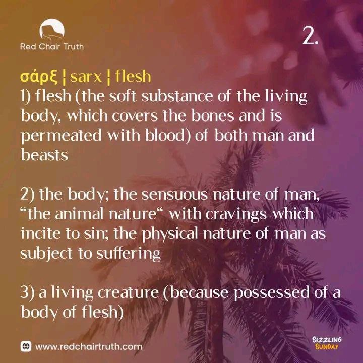 - the body; the sensuous nature of man, “the animal nature“ with cravings which incite to sin; the physical nature of man as subject to suffering