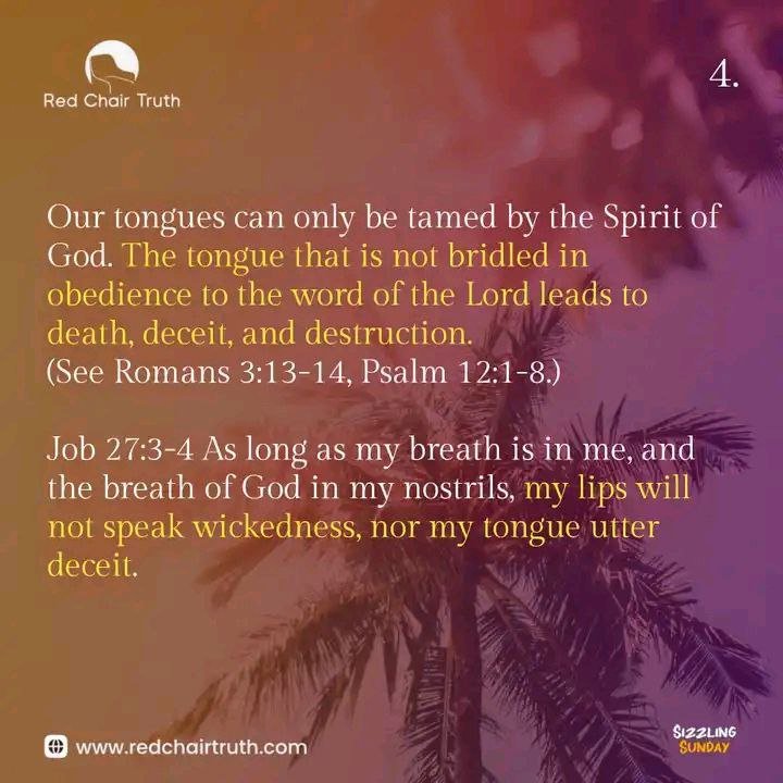Our tongues can only be tamed by the Spirit of God. The tongue that is not bridled in obedience to the word of the Lord leads to death, deceit, and destruction.
