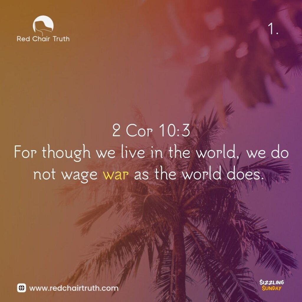 "For though we live in the world, we do not wage war as the world does." 2 Corinthians 10:3