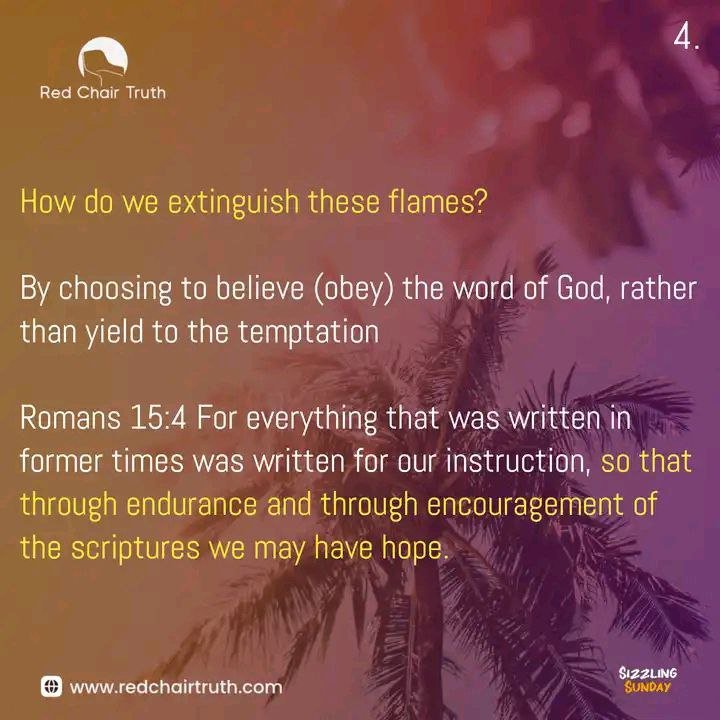 When Satan fires a fiery dart at you, you will be tempted to accept it and fan it into a flame by developing the idea in your mind/heart, and acting on it.