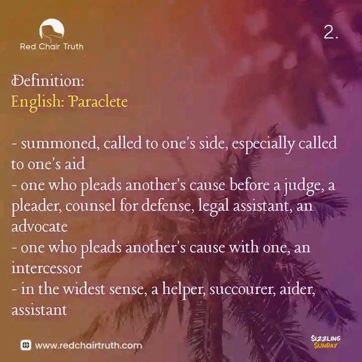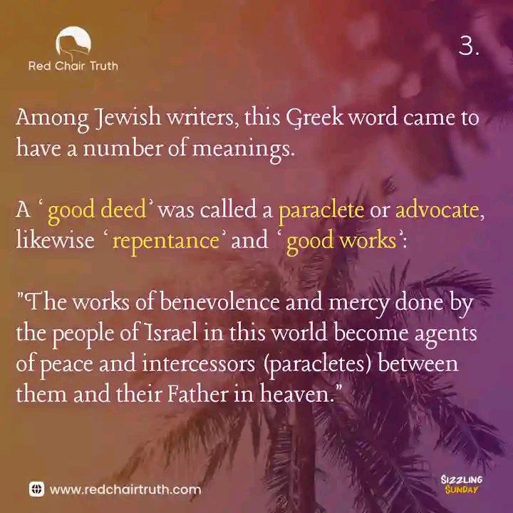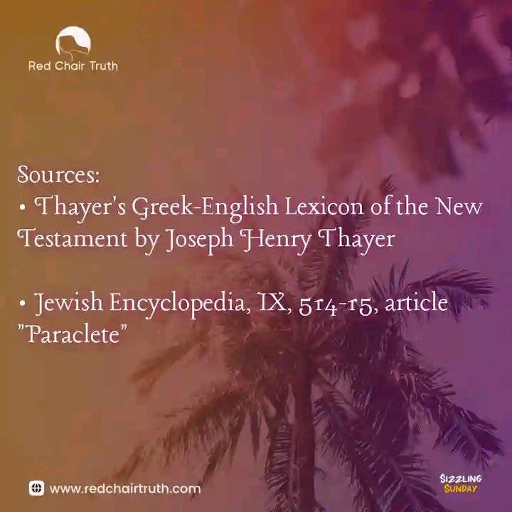 Source(s): Thayer’s Greek Lexicon of the New Testament, Jewish Encyclopedia, IX, 514-15, article “Paraclete”