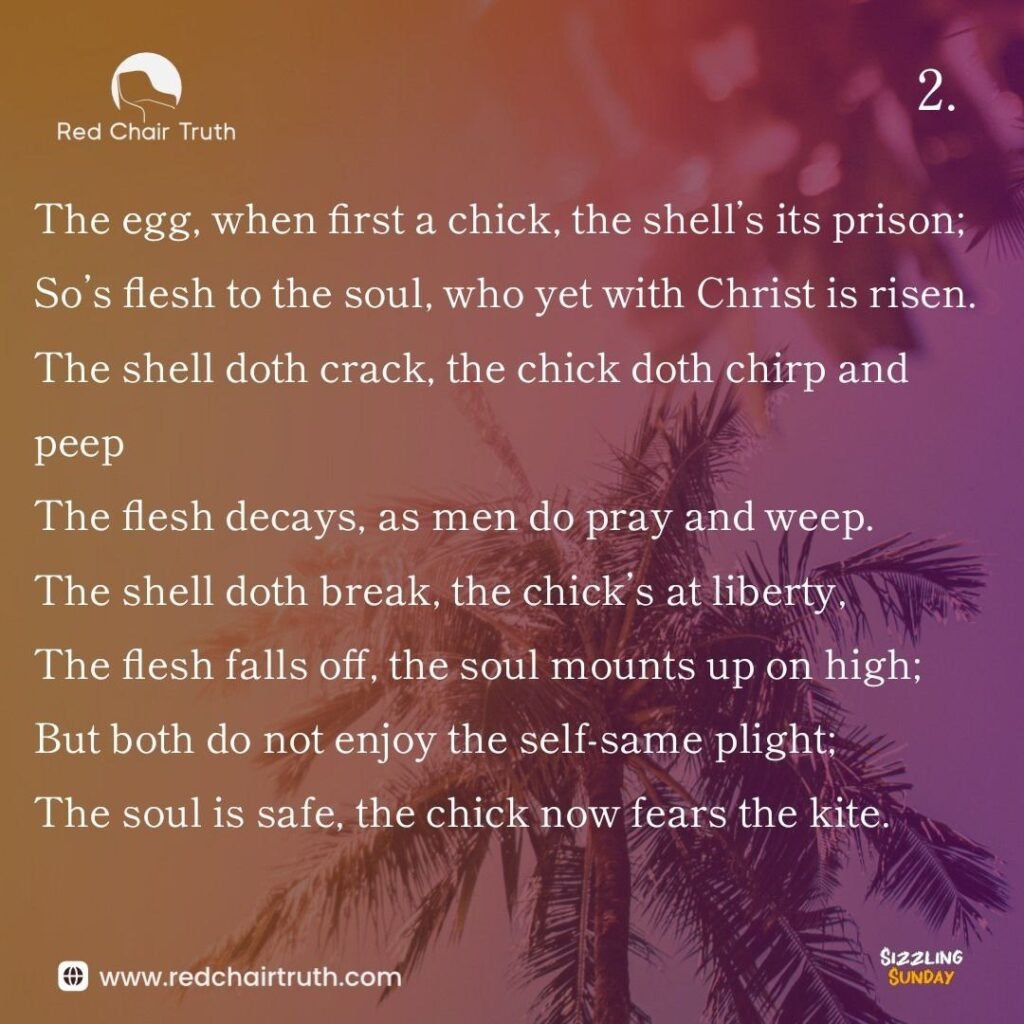 So’s flesh to the soul, who yet with Christ is risen.