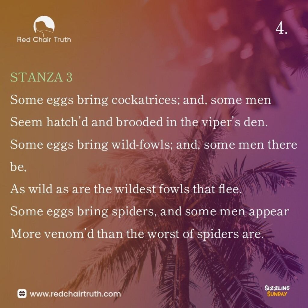 Seem hatch’d and brooded in the viper’s den.