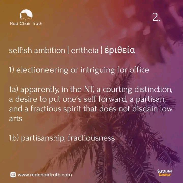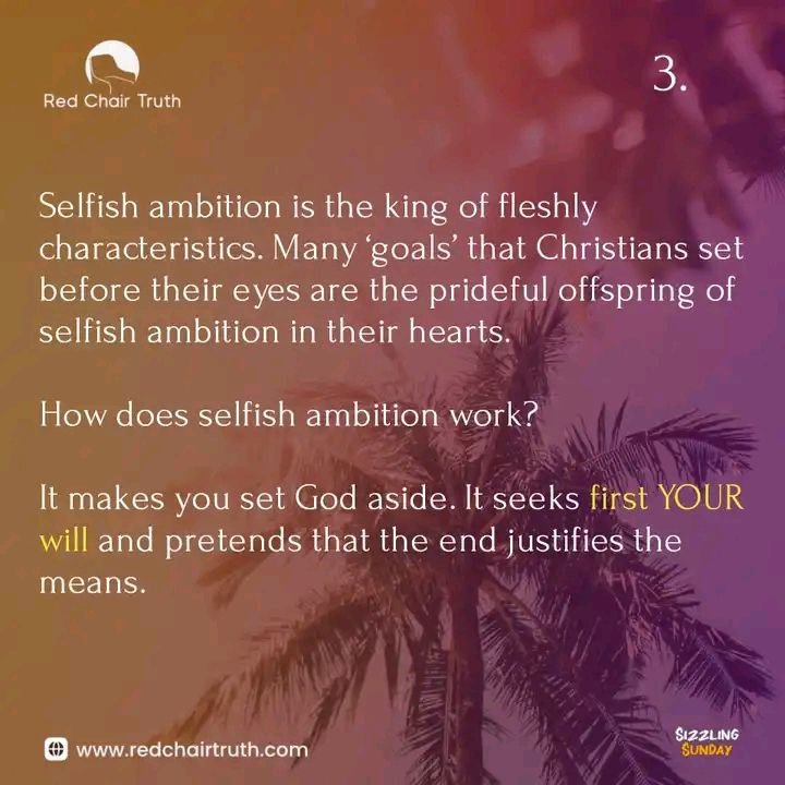 Selfish ambition is the king of fleshly characteristics. Many ‘goals’ that Christians set before their eyes are the prideful offspring of selfish ambition in their hearts.